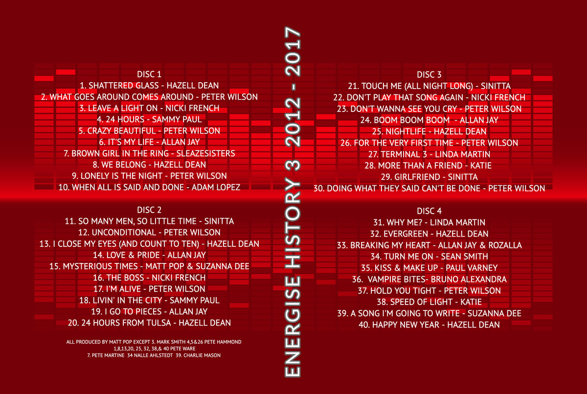 Purveyors Of Perfect Power Pop Since 1993.Energise Records is a British independent record label established in 1993. ... The label has released records for artists such as Sean Smith, Nicki French, Peter Wilson, Jane Badler, Rozalla, Linda Martin, Paul Varney, Haywoode, Spray, Sonia and Sinitta. ... more
